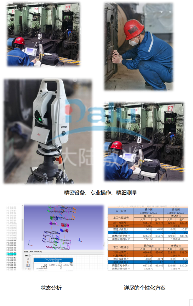 根据与对方沟通的信息,制定完备检测方案,3月12日及时赶到用户现场。与用户对接的技术讨论会上,发现用户在轧机调整、故障判断上有一定的误区,我们根据多年来在牌坊修复看积累的经验和理论数据判断,给出合理的检测方案,并说服用户的相关技术人员接受我们的检测方案。